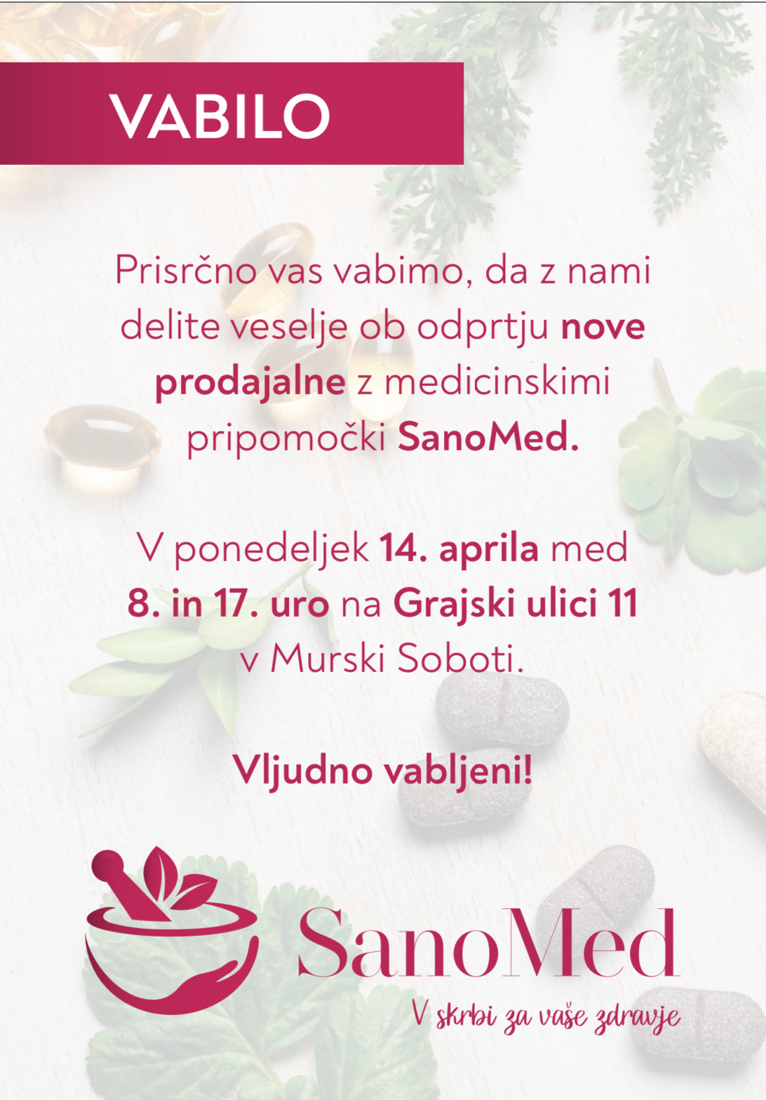 V prodajalni SanoMed skrbimo za oskrbo končnih uporabnikov z medicinskimi pripomočki, zdravili brez recepta, prehranskimi dopolnili, izdelki za boljše počutje, osebno nego, za zdrav dom, ortopedsko obutev in oblačili za zdravstvene delavce.